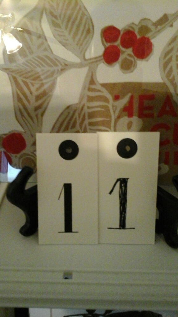 December 14, 2015 Down and Dirty Advent Calendar pt. Deux! Since there are no repeating numbers in the Ikea number set I used to create this calendar, I simply put my drawing skills to use. This post was brought to you by the number eleven! Ho! Ho! Ho! Share this: Click to share on X (Opens in new window) X Click to share on Facebook (Opens in new window) Facebook Like Loading... Related