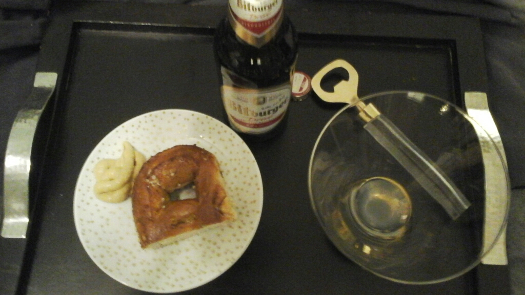 The non-alcoholic beer is called Bitburger Drive (because it’s meant for designated drivers?) It’s from Germany, and I have to say, it’s better than most American non-alcoholic beers. But it’s a little dry. So I added some lime juice. I know, sacrilege, right?