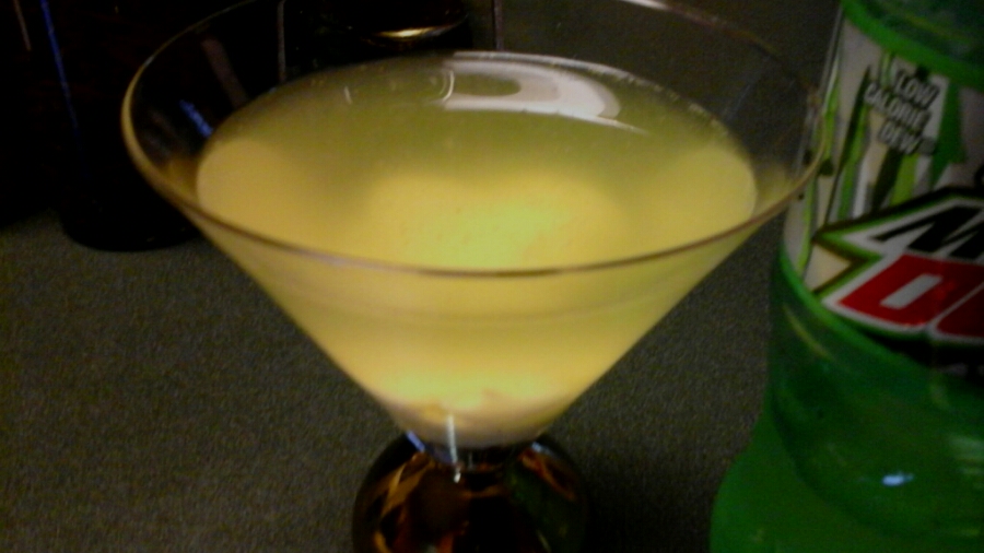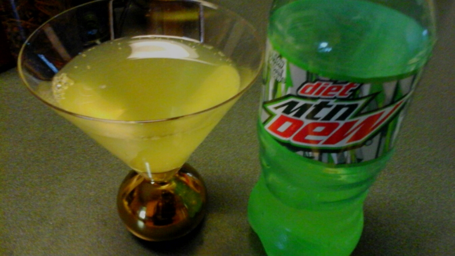 Take some Mtn. Dew/Lime Sparkling Ice, and put it in a glass.