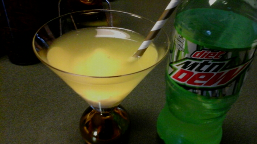 Normally I use lime flavored Sparkling Ice drink, but I didn’t have time to run to Safeway today. The original recipe calls for Mountain Dew, ice cream and green food coloring. My version is:
