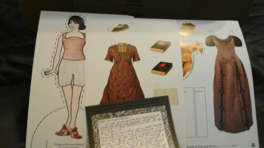 Which brings up my only complaint about the box – there’s a copy of Jane Eyre and a copy of Wuthering Heights with the paper dolls – but where the hell is a copy of The Tenant of Wildfell Hall? Or at least Agnes Grey, for crying out loud?