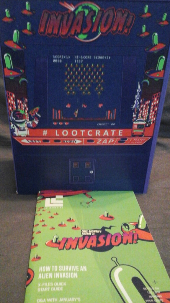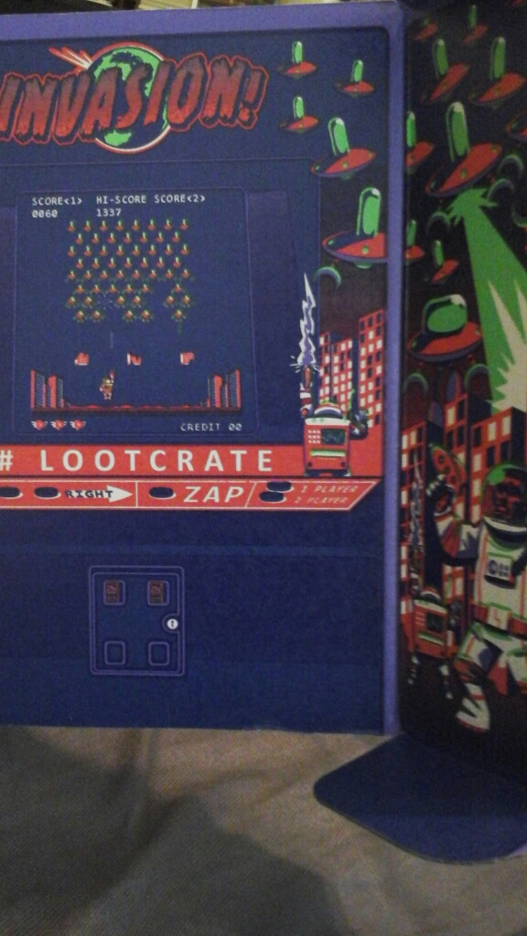 And finally, here’s the box folded back to reveal a giant arcade style console! Also, here’s the Loot Crate magazine with all kinds of interviews!