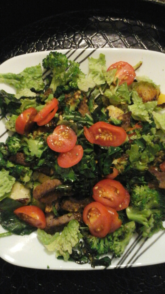 After cooking, I sliced baby tomatoes across the top and added some romaine lettuce.